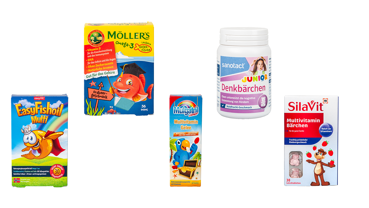 Sie kommen in bunten Verpackungen, mit süßen Tierbildchen oder als Bonbons in Form von Autos daher: Nahrungsergänzungsmittel speziell für Kinder. Sie sollen das Immunsystem stärken und den Nachwuchs beim Denken unterstützen, so die Versprechen...