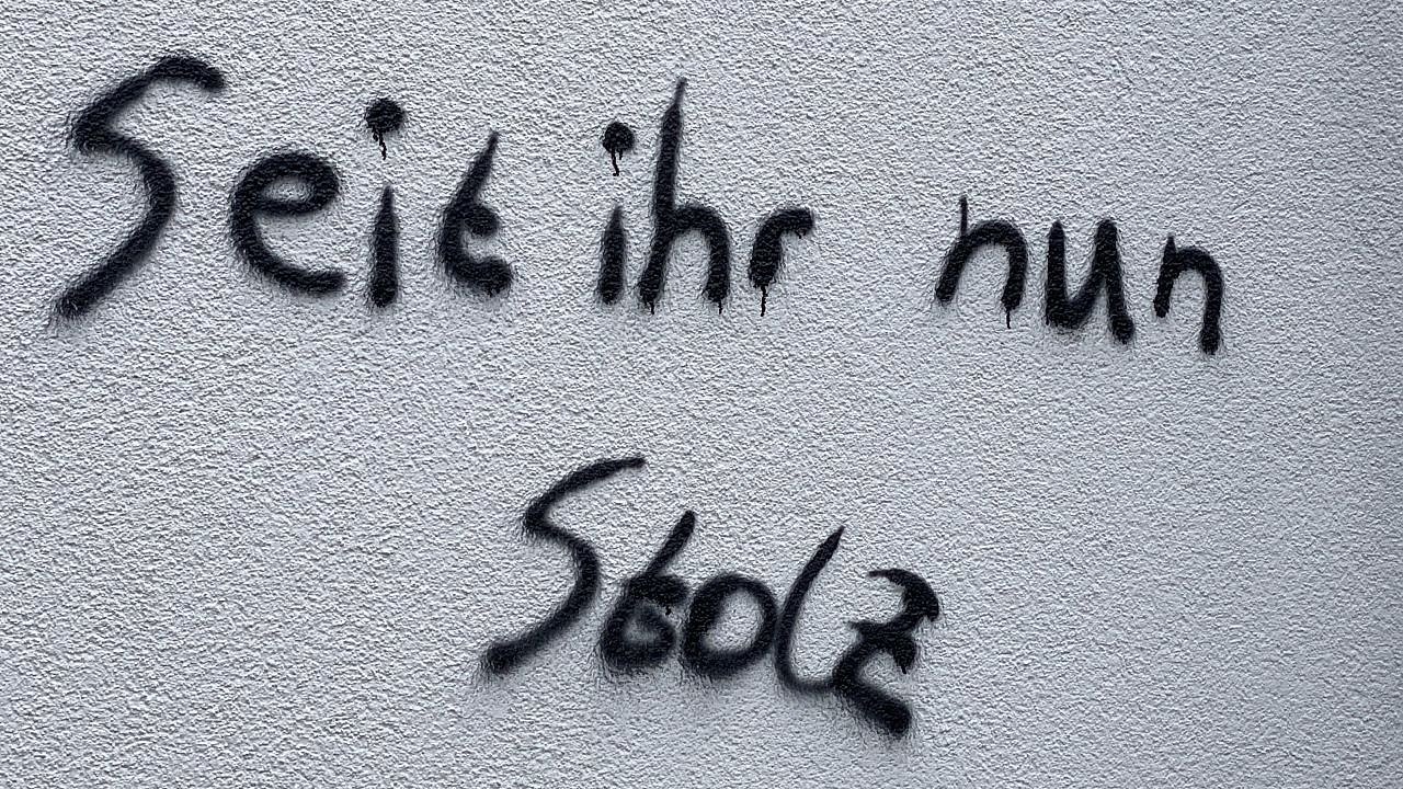 Meinungsfreiheit ist bekanntlich ein hohes Gut, aber muss dies zum einen auf einer frisch geweißten Wand geschehen und zum anderen mit so vielen Rechtschreibfehlern?