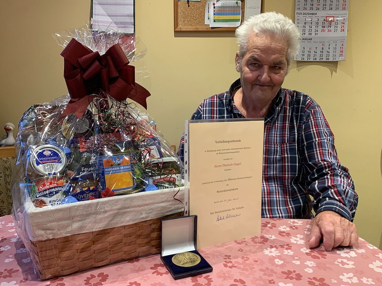 Dietrich Kugel sendet seit 25 Jahren Wetterdaten an den Deutschen Wetterdienst und erhielt dafür eine Ehrenmedaille vom Bundesministerium (Foto: Schramm) Dietrich Kugel sendet seit 25 Jahren Wetterdaten an den Deutschen Wetterdienst und erhielt dafür eine Ehrenmedaille vom Bundesministerium (Foto: Schramm)