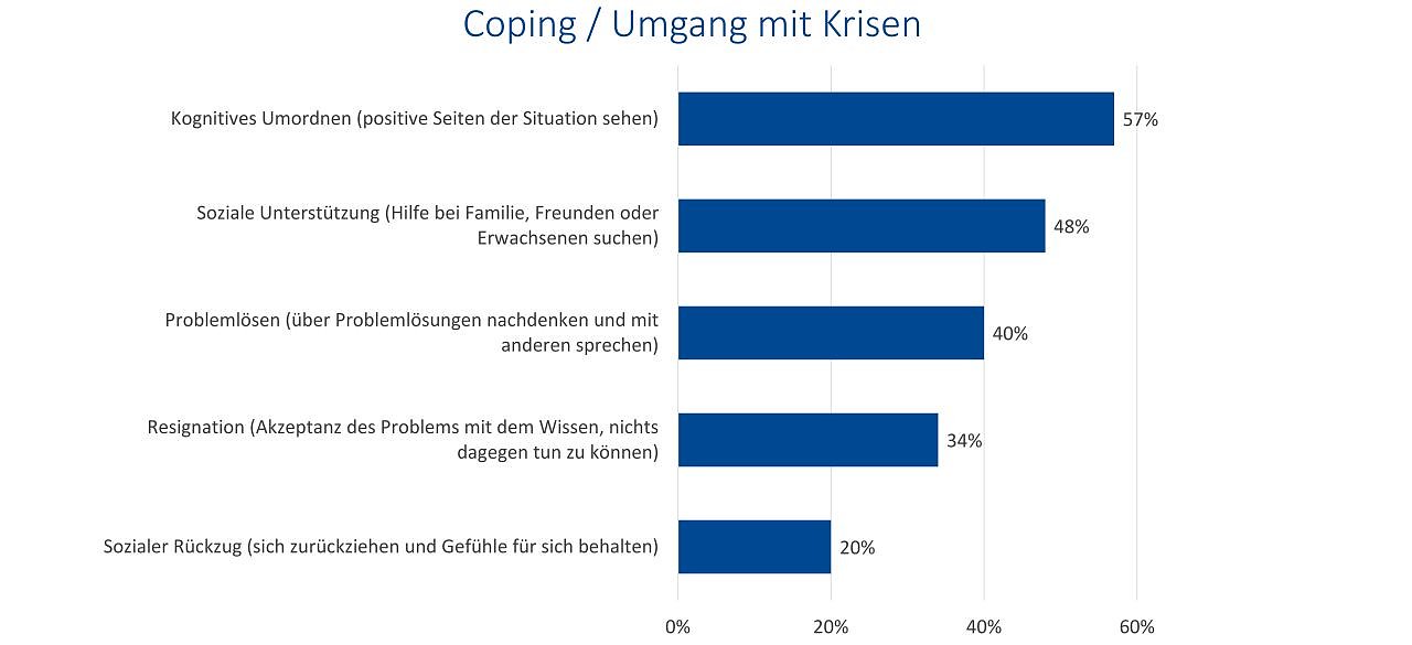 ...vor Kriegen und Terrorismus auch Sorgen um die Spaltung der Gesellschaft und Zuwanderung macht. Auch ist die psychische Gesundheit von Kindern und Jugendlichen immer noch schlechter als vor der Pandemie: Ein Fünftel berichtet von eingeschränkter Lebensqualität und psychischen Belastungen, besonders häufig betroffen sind Mädchen und junge Frauen ab 14 Jahren. Die Studie zeigt aber auch, dass Kinder und Jugendliche über gute Bewältigungsstrategien verfügen, um die momentanen Krisen zu meistern.