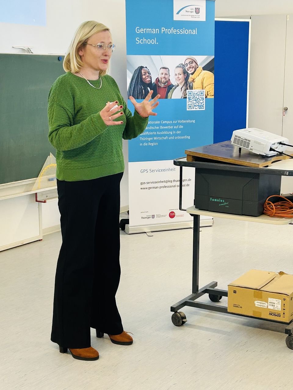 Im Anschluss folgten kompakte Fachimpulse: Friederike Krause von der LEG Thüringen stellte die German Professional School (GPS) vor und zeigte auf, wie internationale Fachkräfte gezielt qualifiziert und in den Arbeitsmarkt integriert werden können.