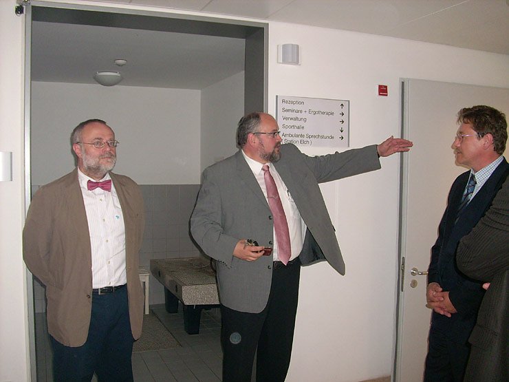 Zuvor hatte Reinhard Wallis die Gäste, u.a. Bürgermeister Matthias Strejc (SPD) und den Bauamtsleiter Sören Hauskeller vom Landratsamt Kyffhäuserkreis (wegen der vielen Baufragen dieser Kreisbereisung) durch die bisherigen Räume geführt. Und hier muss man sagen, etwas verborgen ist hier ein echtes Schmuckstück entstanden, nicht nur vom Aussehen her, sondern insbesondere von der Ausstattung mit therapeutischen Möglichkeiten.