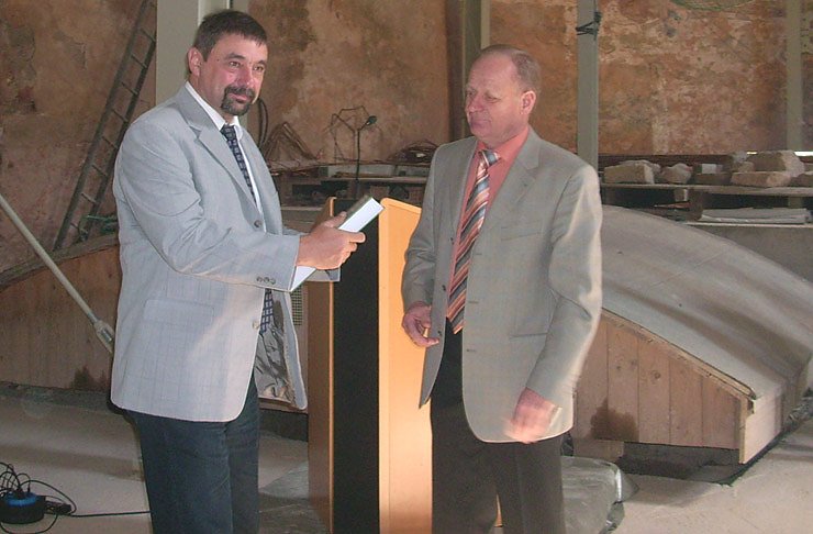 Viele Bürger nutzen die Gelegenheit, um sich vom Baufortschritt und auch von der bisher vom Förderverein geleisteten Arbeit zu überzeugen. Die Eröffnung der kleinen Feierstunden nahm der Vorsitzende des Fördervereins, Wolfgang Wytrieckus (und Stadtratsvorsitzender), vor. Er dankte den vielen Gästen, so auch Bürgermeister Joachim Kreyer und einigen Stadträten, sowie Dr. Hartmut Thiele vom Landratsamt Kyffhäuserkreis für ihr erscheinen. Es war natürlich heute die beste Gelegenheit sich davon zu überzeugen, was schon geleistet wurde, und wie das neue Bürgerzentrum Cruciskirche einmal aussehen soll, siehe Foto.Im weiteren Verlauf der Veranstaltung über gab Wolfgang Wytrieckus dem Bürgermeister eine dicke Chronik von dem Verlauf der bisherigen Arbeiten. Die Chronik von 2001 bis 2002 kommt später ins Archiv der Stadt Sondershausen.