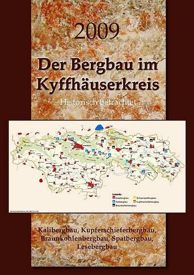 Die Druckerei Starke bringt ab 10.9.2008 einen Kalender zum Bergbau im Kyffhäuserkreis aus historischer Sicht heraus. Im Kalender gibt es Aussagen zu den Kaliwerken in Sondershausen, Immenrode, Göllingen, Seega, Rossleben, Oberheldrungen, Heygendorf. Des weiteren wird der Braunkohlenabbau, der Lesebergbau, der Schwerspatbergbau und der Kupferschieferbergbau im Südteil des Kyffhäuser dargestellt. Auf dem Deckblatt (siehe Bild) wird gezeigt, wo es im Kyffhäuserkreis Bergbau gegeben hat bzw. noch gibt, so der Steinsalzabbau für den Winterdienst in Sondershausen. Erhältlich ist der Kalender in der Information am Markt, im Schlossmuseum in Sondershausen und Bad Frankenhausen, in der Buchhandlung Gräfe, im Reisebüro Tomaschek in Sondershausen und im Erlebnisbergwerk in Sondershausen.