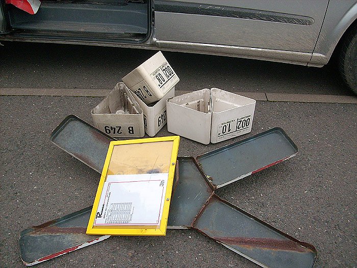 Autor: khhSeltsam muss man zu diesem Fund wirklich schon sagen, denn es waren diverse Verkehrszeichen, Busfahrplantafeln und ähnliches, wie das Foto unten zeigt, die vor knapp einer Stunde gefunden wurden.
