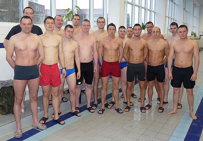 Bundeswehrangehörige des 3006 PzArt 131 aus Stadt Eiledorf, hier zum Gruppenfoto aufgestellt, bevor es ab ins Wasser ging..