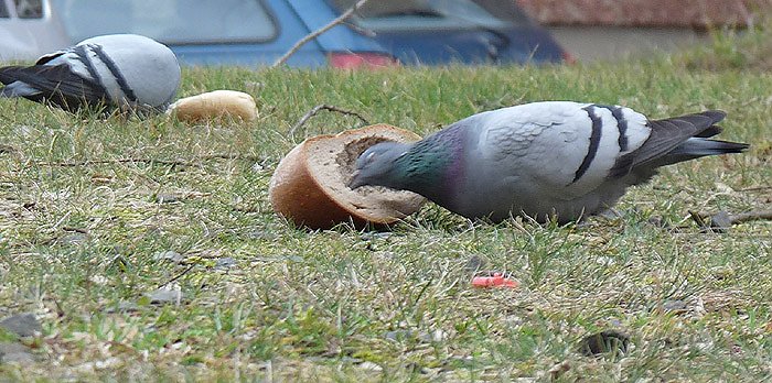 Umso unverständlicher ist, dass es noch Mitmenschen gibt, die gestern gleich im großen Stil zur Taubenfütterung ansetzten. Da blieb es nicht bei einigen Krümeln, sondern gleich ganze Brötchen und halbe Brote werden verfüttert. Da hat nichts mehr mit Tierliebe zu tun.