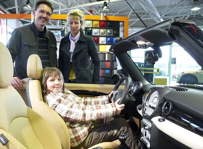 Die neunjährige Clarissa Böhme aus Bad Frankenhausen muss noch lange acht Jahre warten. Heute schon mal ließ sie sich aus dem Fahrersitz des neue MINI Cabrios, das im Nordhäuser BMW-Autohaus Fritze seine Premiere feierte, kaum herausdrängen. Auch ihre Eltern hatte Vergnügen an dem offenen Flitzer.