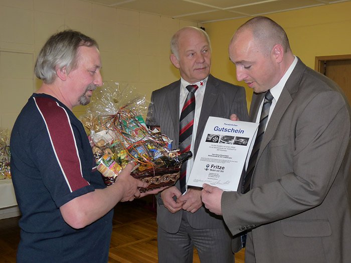 Für den Spender mit der "100. Spende" hatte der Verkaufsleiter vom ortsansässigen BMW Autohaus Fritze, Gert Fuhrmann, eine besondere Überraschung. Er änderte den bekannten BMW-Slogan "Freude am Fahren" in "Freude am Blutspenden" und überraschte den Blutspender mit einem Gutschein. georg Wickenhagen hat die Möglichkeit, ein Wochenende inkl. Versicherung und Kraftstoff, mit einem Fahrzeug aus der vielfältigen BMW-Palette zu fahren!