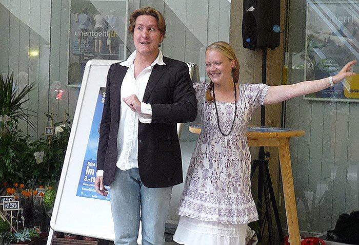 Die Künstler, die bei den diesjährigen Schlossfestspielen mitwirken, geben Proben ihres Könnens im Einkaufstempel von Sondershausen, der Schlossgalerie ab. Gestern stellten sich Jens Wassermann und Vonessa Rose den Sondershäusern vor.
