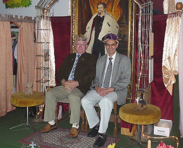 Da weder Landtagsmitglied Günter Grüner noch Vize-Landrat Georg Schäfer im Stress stehen, gewählt werden zu müssen, konnte man sich auch mal die Königskrone probehalber aufsetzen, denn auch im Theater des Ferienparks Feuerkuppe ist König Ludwig im Repertoire (von ca. 50 Stücken). Obwohl dann Günter Grüner äußerte, eigentlich würde ich doch lieber den Casanova spielen.
