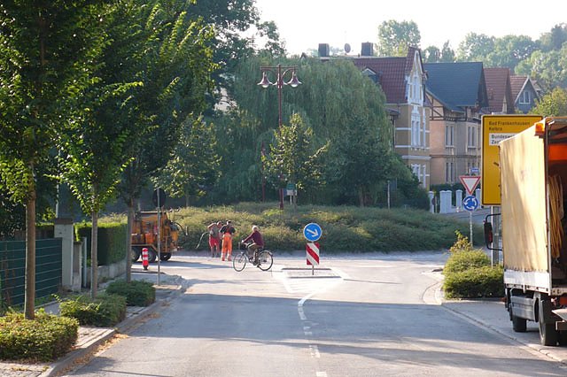 Autor: khhNach Abschluss des Fugenvergusses des Granitgroßpflasters und der Fahrbahnmarkierung wird heute die neu gebaute Fahrbahnoberfläche der Kreisverkehrsanlage Elisabethplatz in Sondershausen termingerecht für den Verkehr freigegeben.