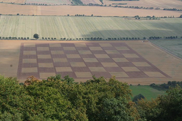 Die Spielfläche ("Schachbrett") wurde auf einem abgeernteten Getreidefeld in der Gemarkung Tilleda (Sachsen-Anhalt) in der "Goldenen Aue" ca. 1000 m Luftlinie nördlich des Kyffhäuser-Denkmals (Thüringen) ins Feld gepflügt. Sie hat eine Größe von ca. 400 m x 400 m, also 160.000 m2. Bereits ein einzelnes Spielfeld ist gigantische 50 m x 50 m groß.