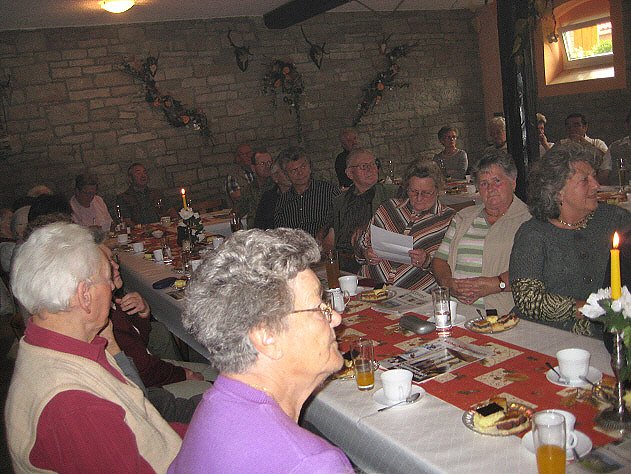 Im weiteren Verlauf der Veranstaltung informierte Margot Schüchner über Aktivitäten in unserer Verbandsarbeit. Ein neues Mitglied konnte erfreulicherweise in unseren Ortsverband aufgenommen werden und weitere zwei neue Mitglieder kommen noch in diesem Jahr hinzu. Die diesjährige Jahresabschlussveranstaltung in weihnachtlicher Form findet in diesem Jahr am Freitag, dem. 11. Dezember, ab 14.30 Uhr im "Wolfstal" in Langenroda statt und wir hoffen sehr, dass auch wieder wie bisher in jedem Jahr die Bürgermeister unserer Region dabei sein werden. Im Nu verging der Nachmittag und ich möchte mich abschließend vor allem bei all den PKW-Fahrern bedanken, die unsere Mitglieder zur Veranstaltung und wohlbehalten wieder nach Hause fuhren.