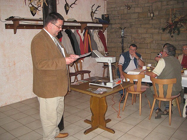 Zu dieser Veranstaltung hatte man Dankenderweise Herrn Kriminaloberkommissar Rainer Stranz von der Polizeidirektion Nordhausen als Referent gewinnen können, der zum Thema "Trickbetrüger und Haustürgeschäfte" sprach. Dabei schilderte er in anschaulicher Weise die Methoden und Verhaltensweisen von Trickbetrügern. Er machte darauf aufmerksam, dass insbesondere ältere Bürger Opfer solcher Machenschaften sind. Deshalb warnte er vor allem unsere zum Teil recht betagten Mitglieder davor, niemand Fremden in die Wohnung zu lassen, nichts zu unterschreiben und auch am Telefon vorsichtig zu sein, am besten bei Gratulation zu einem Gewinn, den Hörer schnell wieder aufzulegen. Vor allem warnte er aber auch davor, persönlichen Daten, wie z.B. die Kontonummer, herauszugeben. Zu all diesen Dingen schilderte er Kriminalfälle, die auch hier in unserer Region trotz Aufklärung leider immer wieder passieren, und unsere Mitglieder waren erstaunt, wie schnell man doch auf solche Betrügereien hereinfallen kann.