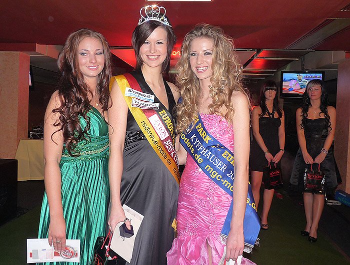 Von der Punktzahl der Jury und des Publikums her wurde mit sehr klarem Vorsprung Sophia Bertels aus Weimar (Mitte) zur neuen Miss Kyffhäuser gewählt. Als Siegerin darf sie zur Wahl der Miss Thüringen antreten. Den zweiten Platz belegte Juliane Seyffert (rechts) aus Halle, die als Model Kyffhäuser bei der Wahl der Miss Europapark Rust sich bewerben darf. Den dritten Platz belegte Ulrike Wölfel aus Halle.