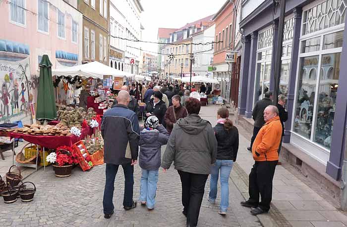 Autor: khhDas Wetter stimmte zum heutigen Start in den Advent. Man konnte heute beruhigt zwischen den Ständen im Freien und den geöffneten Geschäften in der Innenstadt (einschließlich Kaufland) pendeln, ohne vielleicht den Schirm auf und zu klappen zu müssen. Wie schon letztes Jahr waren ale Stände in der Hauptstraße und in dder Weiterführung in der Johann-Karl-Wezel-Straße aufgebaut worden.