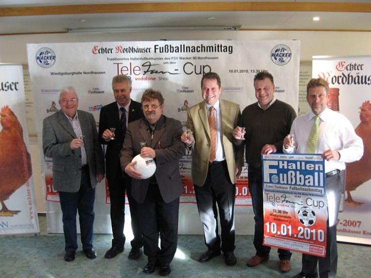 Ulli Mappes, der umtriebige Geschäftsführer der TOP-SPORT-Werbeagentur, staunte nicht schlecht, als die Pressekonferenz zum 13. Nordhäuser Hallenturnier (und zum 12. Mal unter seiner Leitung) zu einer Wacker-internen Krisensitzung auszuarten drohte (nnz berichtet exklusiv darüber). Denn eigentlich stand heute ein gut besetztes Turnier, das Spannung und Fußballsport auf hohem Niveau verspricht, auf der Agenda. Am Sonntag, 10. Januar öffnet die Wiedigsburghalle um 12.30 Uhr ihre Pforten, um den Zuschauern sieben Mannschaften zu präsentieren, die um den Tele-Fun-Cup streiten werden.