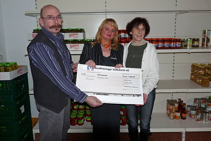 In diesem Jahr kam der Erlös einer Kundenveranstaltung der Nordthüringer Volksbank eG mit dazu, so dass insgesamt 1.000 Euro den Besitzer wechselten. Der Sondershäuser Tafel kommt der Goldsegen jetzigen Zeitpunkt entgegen. Zwar darf man keine Lebensmittel dafür kaufen, so Lothar Hildesheim gegenüber kn, aber vor so einem Fest wie Weihnachten kommen doch öfter mal Fahrten dazu, um in einem der Einkaufsmärkte Spenden abzuholen. Als "Spritgeld" darf diese Spende aber verwendet werden. Bei der Abholung größerer Posten fährt man auch schon mal bis Kassel, was natürlich gewaltig ins Geld geht.