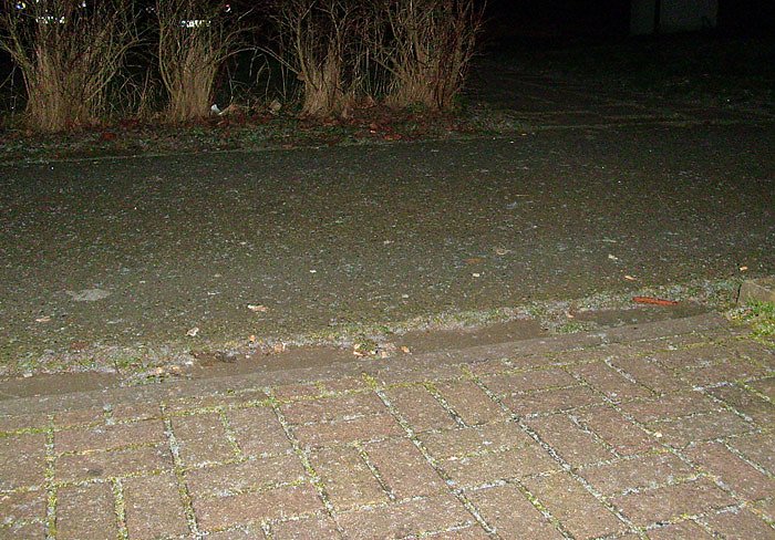Zwischen Borntal und Östertal liegen vielleicht 1,5 km Luftlinie, wenn es überhaupt so viel ist, und auch die Höhenlage ist fast gleich. Natürlich ist der Reporter von kn aus dem Haus gestürzt um auch den ersten Schnee zu fotografieren. Aber da war nichts. Was da glitzerte lag schon seit Sonntag da. Das einzigste was zu sehen war, die vielen Kippen, welche die Raucher wieder mal abgeladen haben. Und das gehässige dabei ist noch, ausgerechnet der Nichtraucher ist am Wochenende mit der Straßenreinigung dran. Die Welt gerät doch wirklich aus den Fugen.