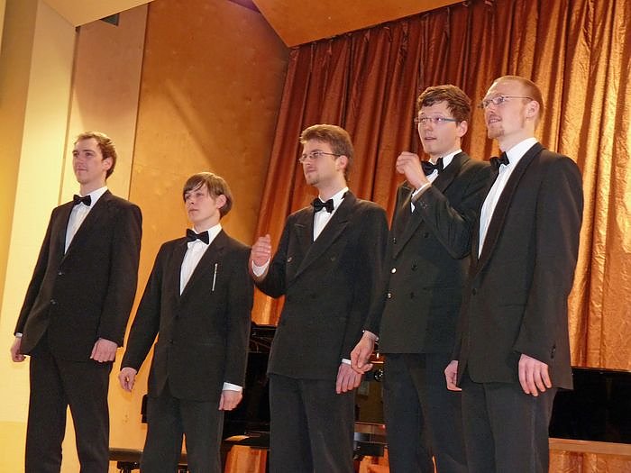 Besonders viel Beifall bekam dieses Gesangsquintett: Christoph Uschkrat, Jena (1986), Bass, Andreas Martin, Großlöbichau (1983), Bariton, Matthias Maurer, Jena (1988), Tenor Rene Richter, Jena (1988), Alt Heiko Knopf, Jena (1989), Sopran. Die diese fünf Sänger ein einfache Gericht, "Chili con carne" besungen haben, das nötigte Respekt ab. Es begeisterte nicht nur das Publikum sondern auch kn. Der kurze Videoausschnitt kann nicht annähernd den sehr guten Gesamteindruck wieder geben. Trotzdem sollten Sie mal reinhören.