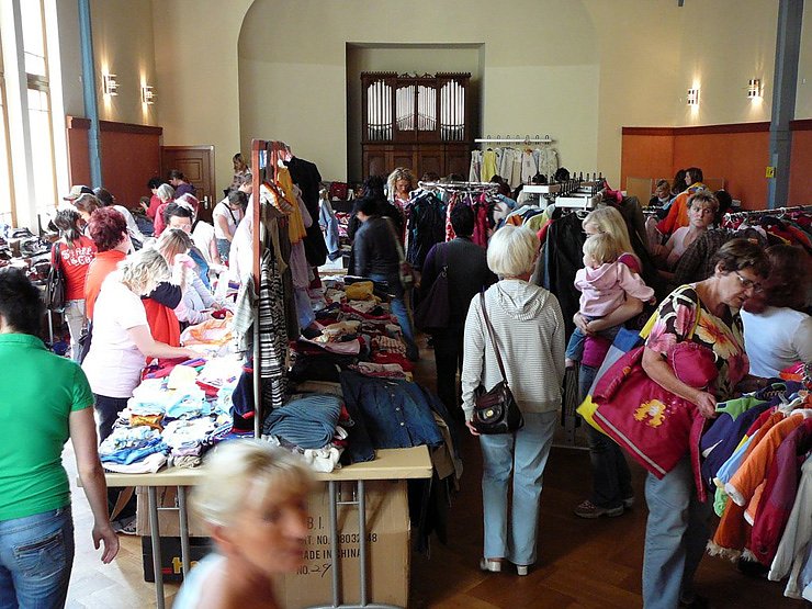Es wird eine sehr große Auswahl an gut erhaltener Sommer- und Übergangsbekleidung, Kinderwagen, Autositzen, Baby-Ausstattung sowie Spielsachen, Puppen, Büchern, DVDs und Kinderfahrzeugen zu günstigen Preisen angeboten.