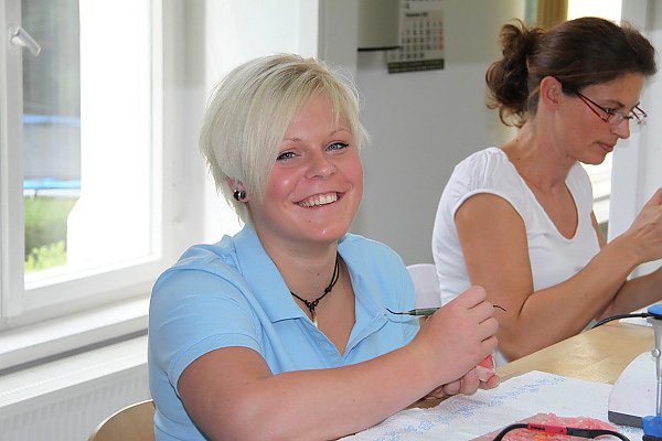 Autor: khhEigentlich wollte Zahntechnikermeister Marko Zelmer (rechts) für das Ausbildungsjahr 2010-2014 nur eine(n) Techniker(in) ausbilden. Auf das hervorragende Potential der beiden Bewerber wollte er jedoch nicht verzichten. Nach den guten allgemeinen Voraussetzungen für den anspruchsvollen Beruf, entwickelten Carolin und Stefan in der Schnupperwoche ein besonderes handwerkliches Geschick, das selbst den kritischen Blicken des neuen Chefs keinen Zweifel ließ. Den richtigen Riecher bewies Marko Zelmer auch schon im letzten Jahr, als Anja Schruttke (bereits im zweiten Ausbildungsjahr) bei ihm startete. Die talentierte und ehrgeizige Anja absolvierte das erste Ausbildungsjahr mit einem Notendurchschnitt von 1,2.