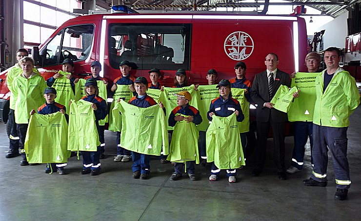 Die Jugendgruppe der Freiwilligen Feuerwehr Bad Frankenhausen ist öfter mal unterwegs. Da lässt es sich nicht vermeiden, dass man auch mal kräftig nass wird. Das muss nicht sein, dachte man sich bei der Kyffhäusersparkasse und stellte 30 Allwetterjacken zur Verfügung, die insbesondere vor Wind und Regen schützen sollen. Durch das leuchtende Neon-Gelb sind sie gleichzeitig ein wichtiger Warner, Vorsicht, hier sind Personen unterwegs.