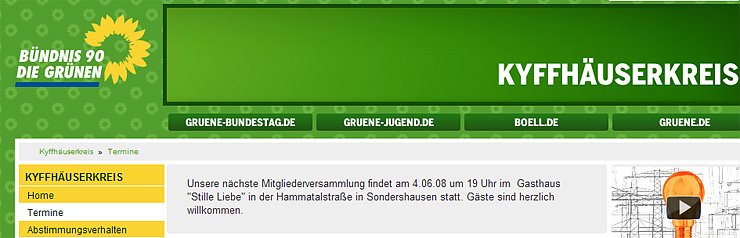 Wer die Partei ist, die so fürchterlich aktuell im Kyffhäuserkreis ist? Man erreicht sie über www.gruene-kyffhaeuserkreis.de.