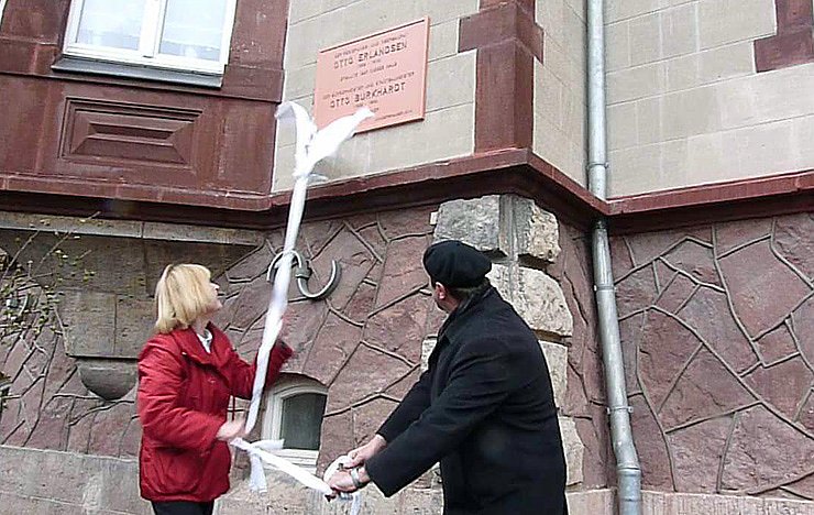 Am Dienstag, dem 16. November, mittags "mit dem Glockenschlag zwölf" (wie Goethe über den Zeitpunkt seiner Geburt schreibt), wurde an der Villa Gartenstraße 15 zu Ehren ihres Erbauers, des Regierungs- und Oberbaurats Otto Erlandsen (1858 - 1910) und des langjährigen Bewohners, des Bürgermeisters und Stadtbaurats Otto Burkhardt (1869 - 1956) eine Gedenktafel enthüllt. Die in den letzten zwei Jahren stattgefundene Sanierung des 1898 erbauten Gebäudes fand damit auch seinen formellen Abschluss.