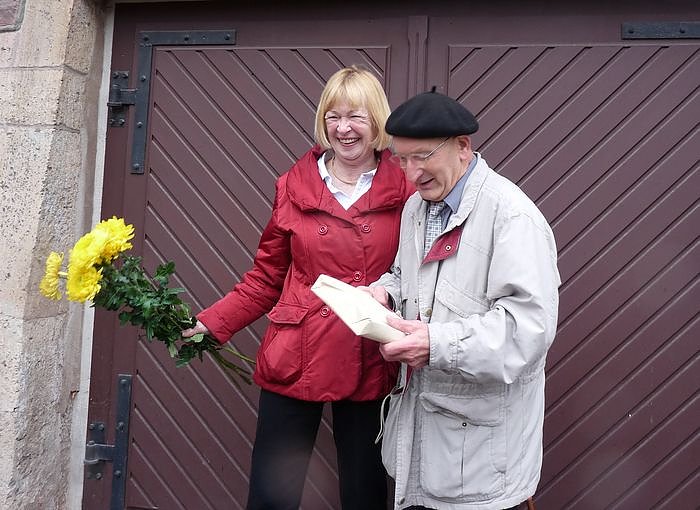 Ulike Hofsaess und Helmut Köhler. Es ist ein seltener Fotoschuss, denn den immer noch sehr mit Kunst und Kultur verbundenen ehemaligen Kulturamtsleiter auf dem Foto zu haben ist nicht einfach, der er sehr gern im Hintergrund agiert.