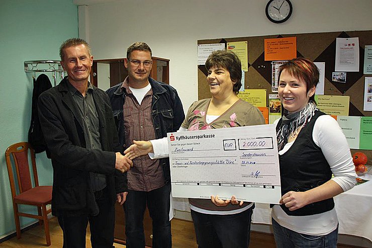 Große Freude herrschte auch bei der Frauen- und Familienbegegnungsstätte "Düne e.V." in Sondershausen über die Spende von 2.000 Euro. Nach Auskunft der Vorstandsvorsitzenden Astrid Wellnowski können mit dem Geld vor allem dringend benötigte Tische für die Räumlichkeiten des Vereins gekauft werden, in dem verschiedene Betreuungs-, Beratungs- und Bildungsangebote für Familien und Kinder vorgehalten werden. Der Verein wurde im Januar 1994 gegründet und hat sich als Familienzentrum und Mehrgenerationenhaus mit vielfältigen Veranstaltungen profiliert.