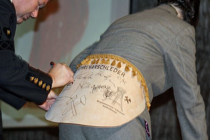 Bei der gestrigen Barbarafeier im Bergwerk Sondershausen bekam nicht nur Thüringens Ministerpräsidentin Christine Lieberknecht (CDU) einen Klapps aus das Arschleder. Zum Brauch gehört auch ein kräftiger Schluck dazu. Bei der Feier mit Kamera und Stift dabei unser Leser Hans-Jürgen Schmidt...
