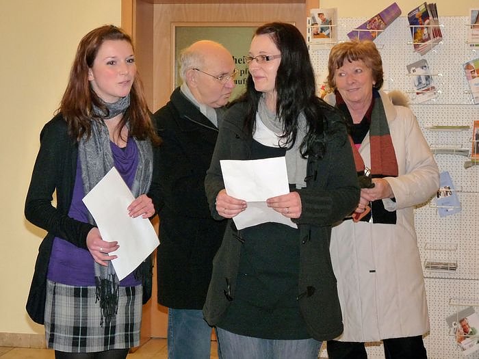 Saskia Müller und Kathrin Siegmann erläuterten den Gästen die Ziele der Ausstellung und bedanken sich beim Landrat, dass er Möglichkeit der Ausstellung ermöglichte.