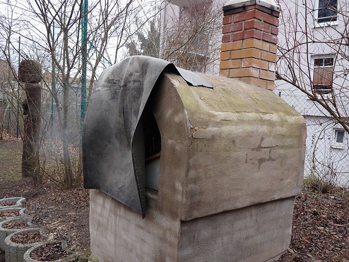 Der qualmende Backofen hinter Just dient nicht etwas zum Verbrennen von Hexen, als Hänsel und Gretel, sondern der wird wirklich richtig beheizt, um backen zu können.