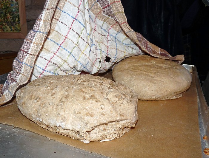 Heute wurde Brot gebacken. Leider kam kn zu früh zum Verkosten. Die hier liegenden Brote müssen erst noch mal in den Ofen. So lange konnte kn heute Mittag nicht warten, denn in der Redaktion lag schon der Polizeibericht für die Leser von kn.