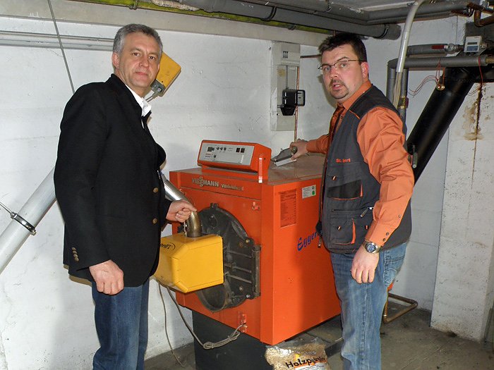 Die bei der Umstellung eigentlich nicht mehr benötigten Ölkessel werden beim Kunden belassen und ihnen einfach ein Pelletbrenner vorgeschaltet. "Die Tanks benutzen wir jetzt als Pelletbehälter sowie Pufferspeicher weiter. Die Installationskosten liegen deutlich unter denen einer kompletten Pelletheizung und sind somit auch für den Endkunden attraktiv. Außerdem vermeiden wir unnötigen Abfall", so Eggert bei der Besichtigung eines in Betrieb befindlichen Anschauungsobjektes.