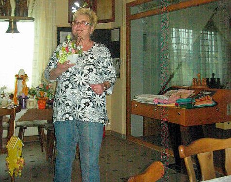Autor: khhSeit Jahren treffen sie sich vor dem Osterfest (wie auch vor Weihnachten) um mit Viola Härtel (Bild oben) aus Artern zu basteln. So versorgen sich die Mitglieder rechtzeitig vor dem Fest mit passenden Zimmerschmuck und kleinen Geschenken. So stimmte man sich zum Verbandsnachmittag am 14. April wieder auf das bevorstehende Osterfest ein und hatte dabei viele Spaß, wie die Fotos, welche Steffen Küttner für uns schoss, beweisen.