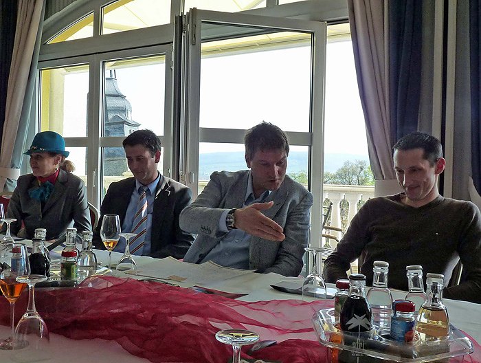 Mit der Benefiz Gourmet Gala am 5. Mai 2011 im Achteckhaus von Schloss Sondershausen beginnt eine neue Veranstaltungsreihe zugunsten regionaler Bauwerke. Das man sich heute im Hotel "Residenz" in Bad Frankenhausen traf, war dabei kein Zufall. Bernd Jurke (2. v. r) und der Geschäftsführer und Sternekoch Ralf Kronmüller (re.) erläuterten mit dem schiefen Turm der Oberkirche, zu wessen Gunsten die diesjährige Gala stattfinden soll. In diesem Jahr wird aus aktuellem Anlass die Oberkirche Bad Frankenhausen mit den Spendenerlösen der Gala bedacht, im nächsten Jahr soll ein Baudenkmal von der Benefiz-Gala profitieren.