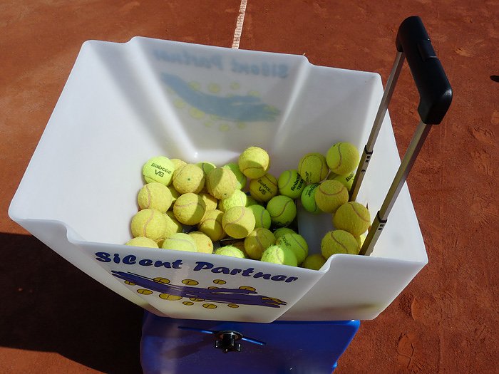 Das Glück ist allerdings noch nicht ganz vollkommen. Es sind noch nicht genügend Bälle da. Zwar haben die Vereinsmitglieder schon einige Bälle mitgebracht, aber es reicht bei weitem noch nicht. So eine Wurfmaschine kann mit 200 Bällen bestückt werden, um sie auch wirklich effektiv betreiben zu können.