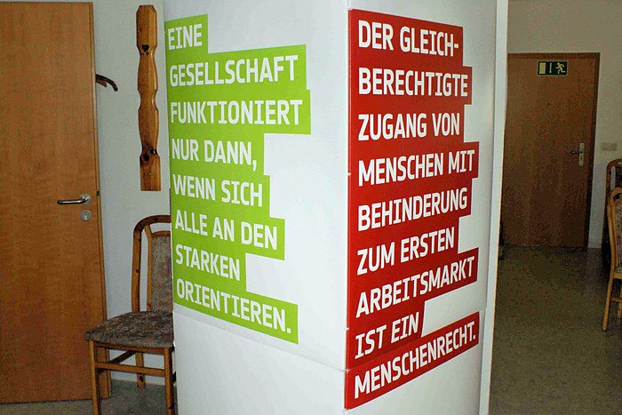 Aufsteller machten in den Räumen der Volkssolidarität alle Besucher auf die Forderungen der Aktion Mensch aufmerksam