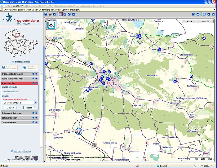 Das Thüringer Verkehrsministerium hat seinen Radtourenplaner jetzt "überarbeitet", diese Pressemeldung des Ministeriums hatte kn Planen Sie Ihre Radtour im Internet auch weiterverbreitet. Gravierende Mängel aus der ersten Version wurden aber nicht überarbeitet, zumindest, was das gebiet um Sondershausen herum betrifft....