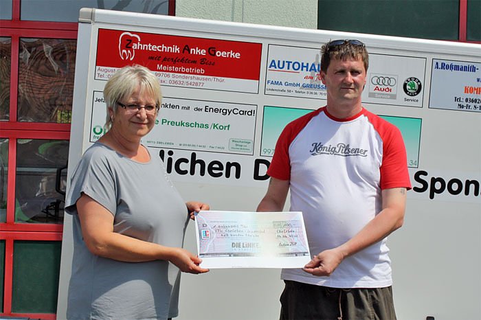 Geldspenden: Battle Tank Rockensußra, Schnitzelhaus Gundersleben, Bürgermeister Uwe Vogt, LTU Ebeleben, Tyczka, RWZ Ebeleben , OIL Tankstelle, Tischlerei Wiedemann, Frisör Trend, Baugeschäft Kämmerer, Nordthüringer Volksbank eG Ebeleben, Immo Grabmann, MdB Kersten Steinke, Thüringer Kühlhäuser Ebeleben, Mode Heyne
