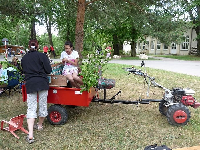 Aber auch motorisierte "Bollerwagen" konnte man auf dem Straußberg sehen. Und sogar mit frischem Grün geschmückt, eben ganz pfingstmäßig.