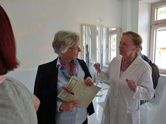 Angela Engelhard vom Sozialministerium lässt sich beim anschließenden Rundgang durch die neuen Räume von Dr. Liliane Grützner die Funktionsweise der einzelnen Räumlichkeiten erläutern.