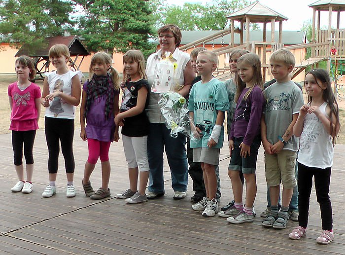 Autor: khhEigentlich hatte sie ja vieles organisiert, für die sportlichen und gesunde Projekttage im Kinder- und Jugenderholungszentrum Ferienpark Feuerkuppe in Straußberg im Rahmen es Lidl-Fitnesscup (kn berichtete bereits). Und dann diese Überraschung. Es gab ein Präsent von Schülerinnen und Schülern und deren Eltern. Die Klasse 2 der Grundschule Hohenebra (genauer gesagt Stammgruppe SG III K2) bedankte sich schon mal mit einem Abschiedsgeschenk von Klassenleiterin Helga Schlegel.