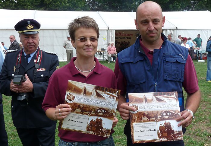 Die Auszeichnungen wurden Feuerwehrfest vom Vorsitzende der Kreisfeuerwehrverbandes Sondershausen, Mario Hasenbein übergeben. Landrat Peter Hengstermann und Landtagsmitglied Manfred Scherer (beide CDU) waren die ersten Gratulanten.
