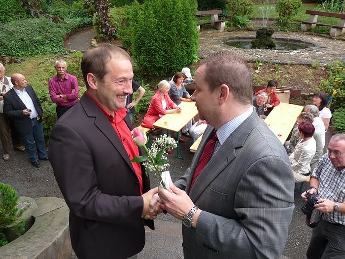 Honorarerhöhungen sind nicht drin, so Michael Kriese, aber für kleine Auszeichnungen hatte man noch einige Euros übrig. So bekam Uwe Lumm ein kleines Präsent überreicht. Seit 25 Jahren ist er Kursleiter für Englisch.