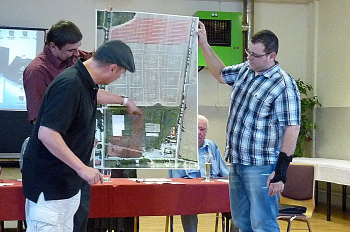 Während Bürgermeister Kreyer und der Vorsitzende der Kirmesburschen Berka, Alexander Schmidt, mehr eine tragende Rolle übernahmen, erläuterte Tobias Schneegans (Bowling-Center) Einzelheiten über die geplanten Örtlichkeiten, wie Aufstellung Festzelt (70 x 30 Meter) , Festwiese und Camping-Platz (abgeerntetes Feld). Übrigens haben sich bereits rund 2.500 Camper angemeldet, wie Schneegans berichtete.