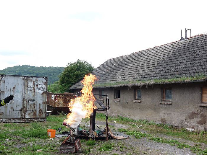 Bei so viel Engagement bot die Feuerwehr Berka noch ein anderes feuriges Erlebnis. Man demonstrierte, dass man Ölbrände nicht mit Wasser löscht, weil es erst recht ein riesige Stichflamme gibt.